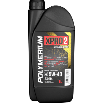 Всесезонное полностью синтетическое масло POLYMERIUM XPRO2 создано из лучших базовых ПАО и эстеровых масел с добавлением мощного пакета присадок стандарта АСЕА А3/В4.